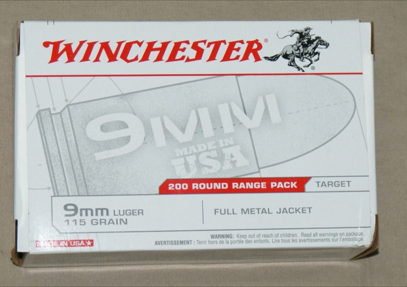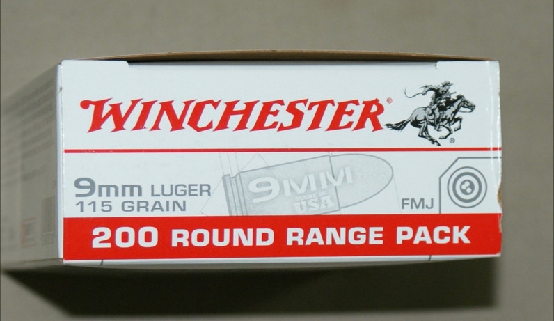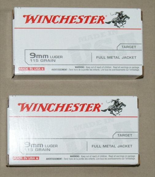 Winchester 9mm FMJ 115gr ammunition. 50rd and 200rd boxes available