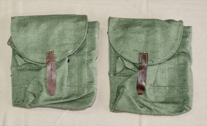 2x AK magazine pouch. Military surplus. Unissued condition. No mold. Holds 4x magazines, oil bottle & cleaning rods (not included).