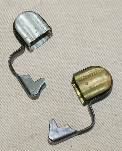 Swiss K31 rifle muzzle caps. One is brass and the other aluminum. One of each is included. Military surplus.