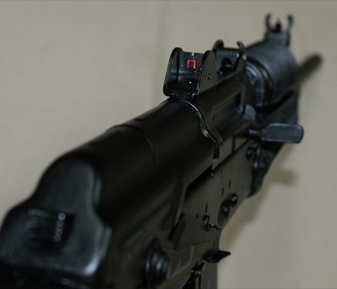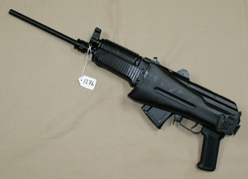 This rifle, chambered in 7.62 x 39 mm, utilizes the famous short gas system (Krinkov or AKS-74U) and features a full-length 16" barrel.